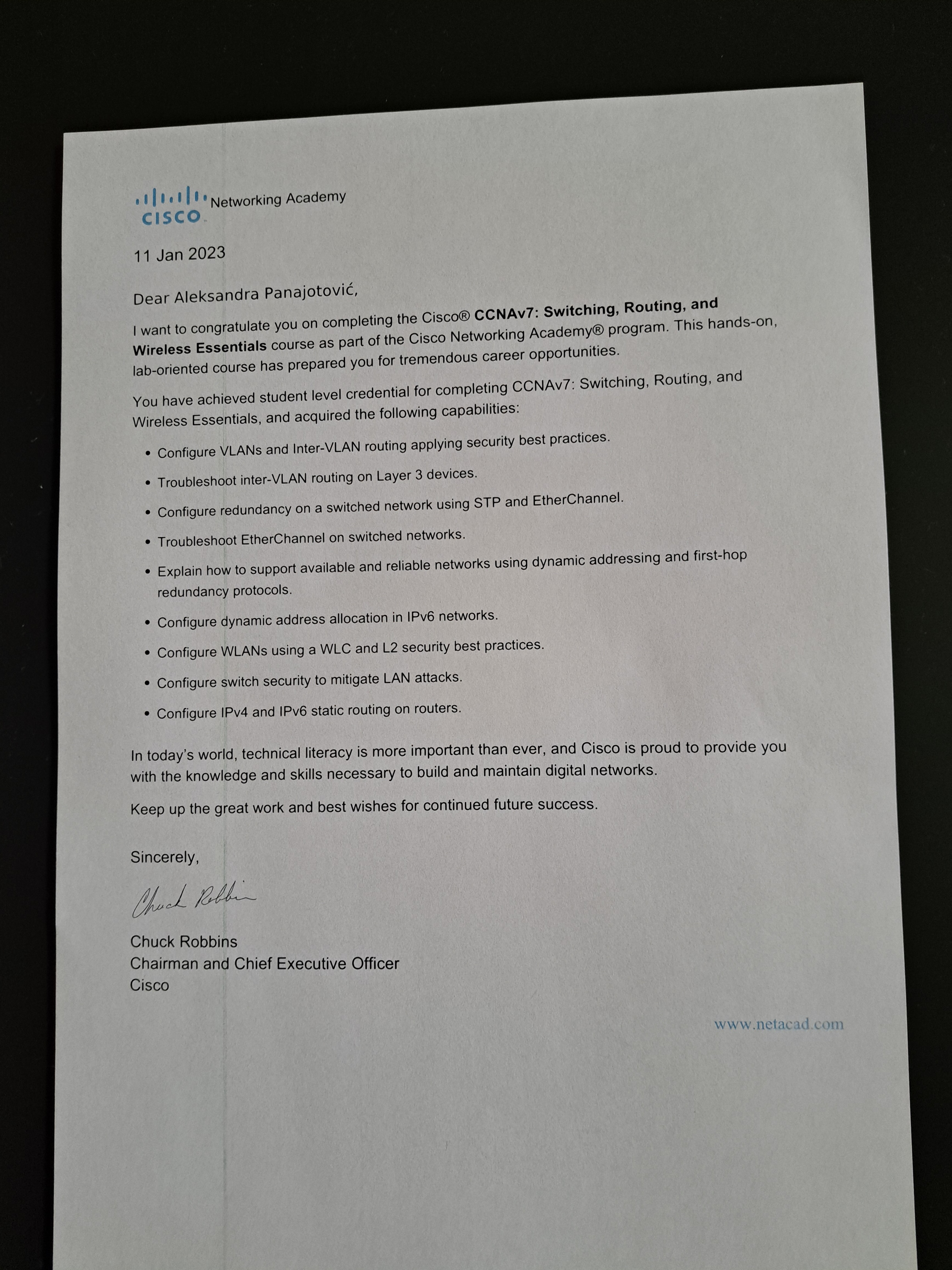 - Odsek / Grupa / Smer: Elektronika i telekomunikacije