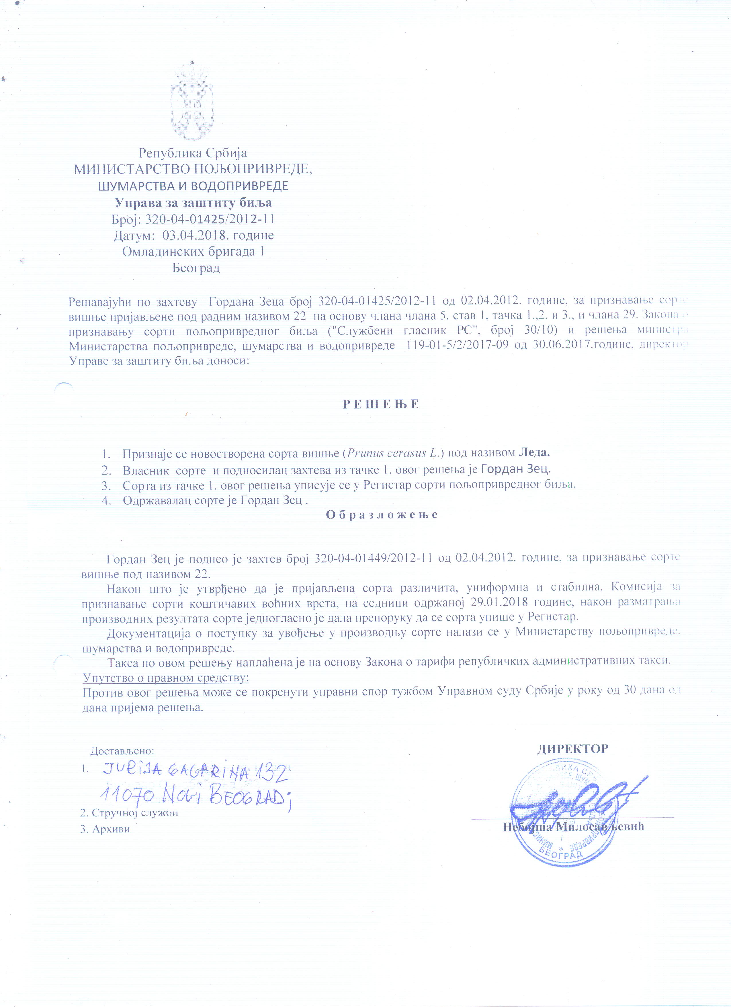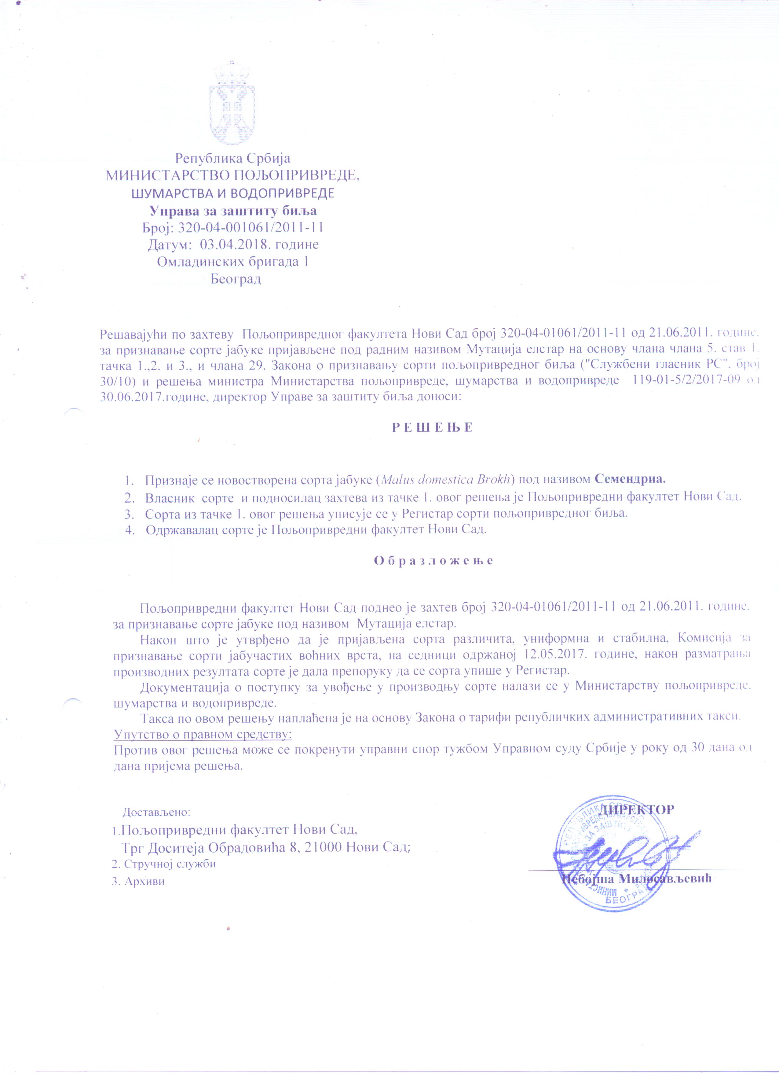 - Fakultet: Poljoprivredni fakultet, Univerzitet u Beogradu