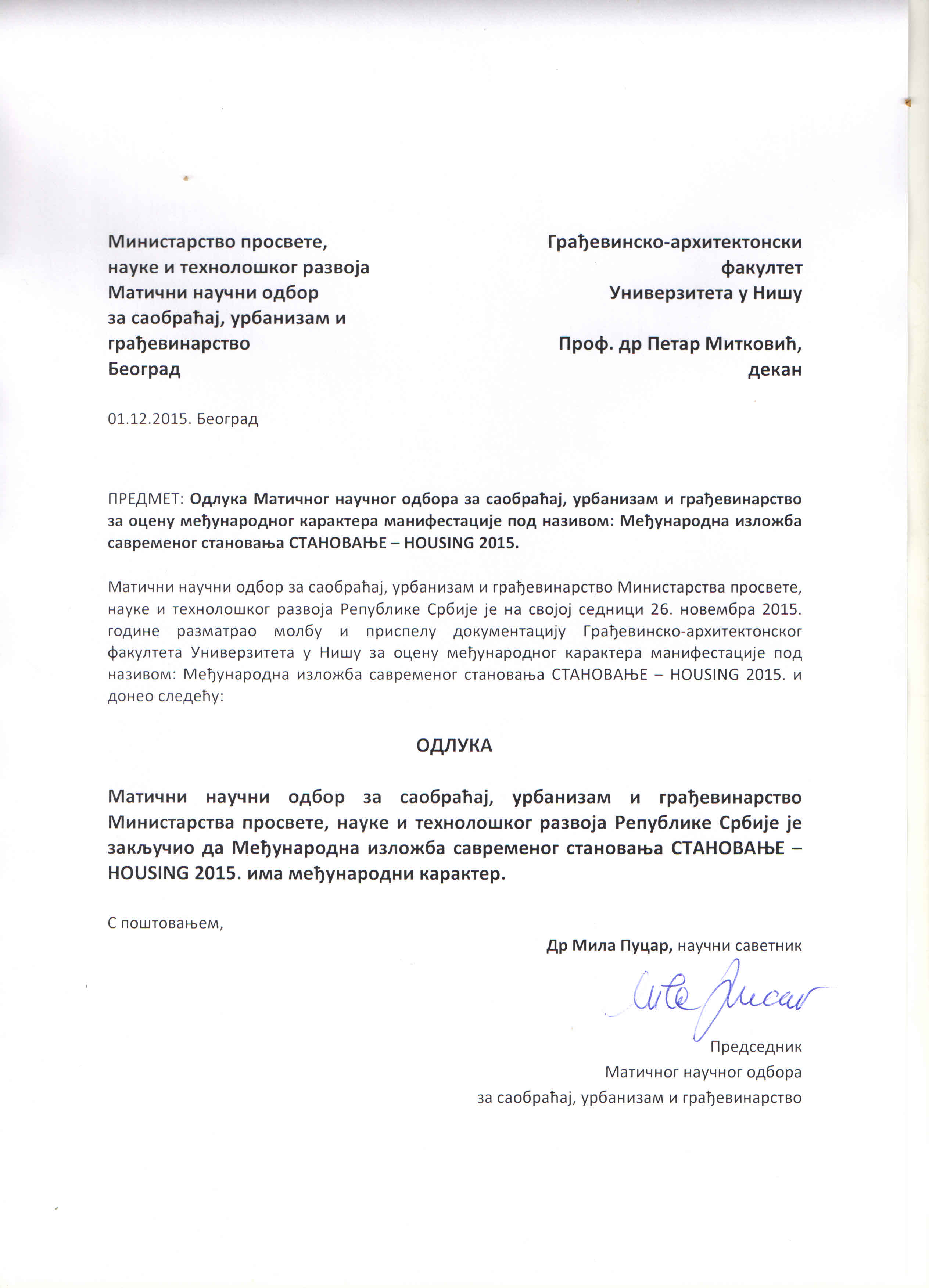 - Kondic S, Tanic M, Mitkovic P, Nikolic V, Penic M, (2016), THE INFLUENCE OF URBAN PLANNING PARAMETERS ON HOUSING QUALITY IN MULTI-FAMILY RESIDENTIAL AREAS IN NIS, SERBIA, Architecture. Building. Education., Magnitogorsk, Russia, ISSN 2309-7434, Magnitogorsk State Technical University Named After G.I. Nosov, No 1 (7) 2016, УДК: 728.1.012, pp. 147-156. (M51)